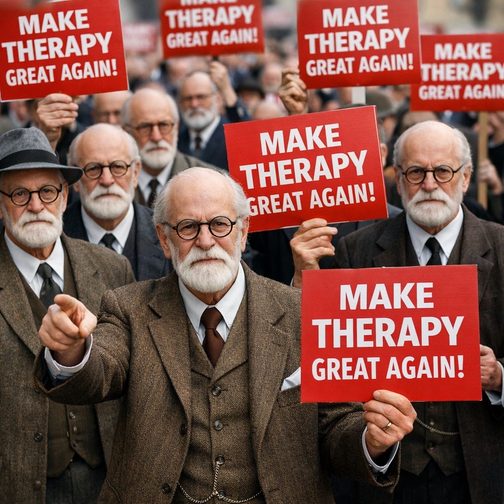 When therapists talk about returning to “real therapy,” what they’re actually doing is retreating into a nostalgic narrative that protects them from having to reckon with present realities: